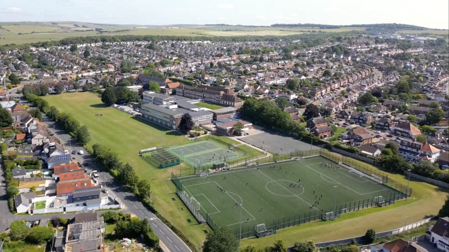 Facilities include: 4G Pitch, Changing Rooms, Classrooms, Cricket Nets, Dance Studio, Drama Studio, Gym, Hall, Meeting Rooms, MUGAs, Canteen, School Field, and Swimming Pool.